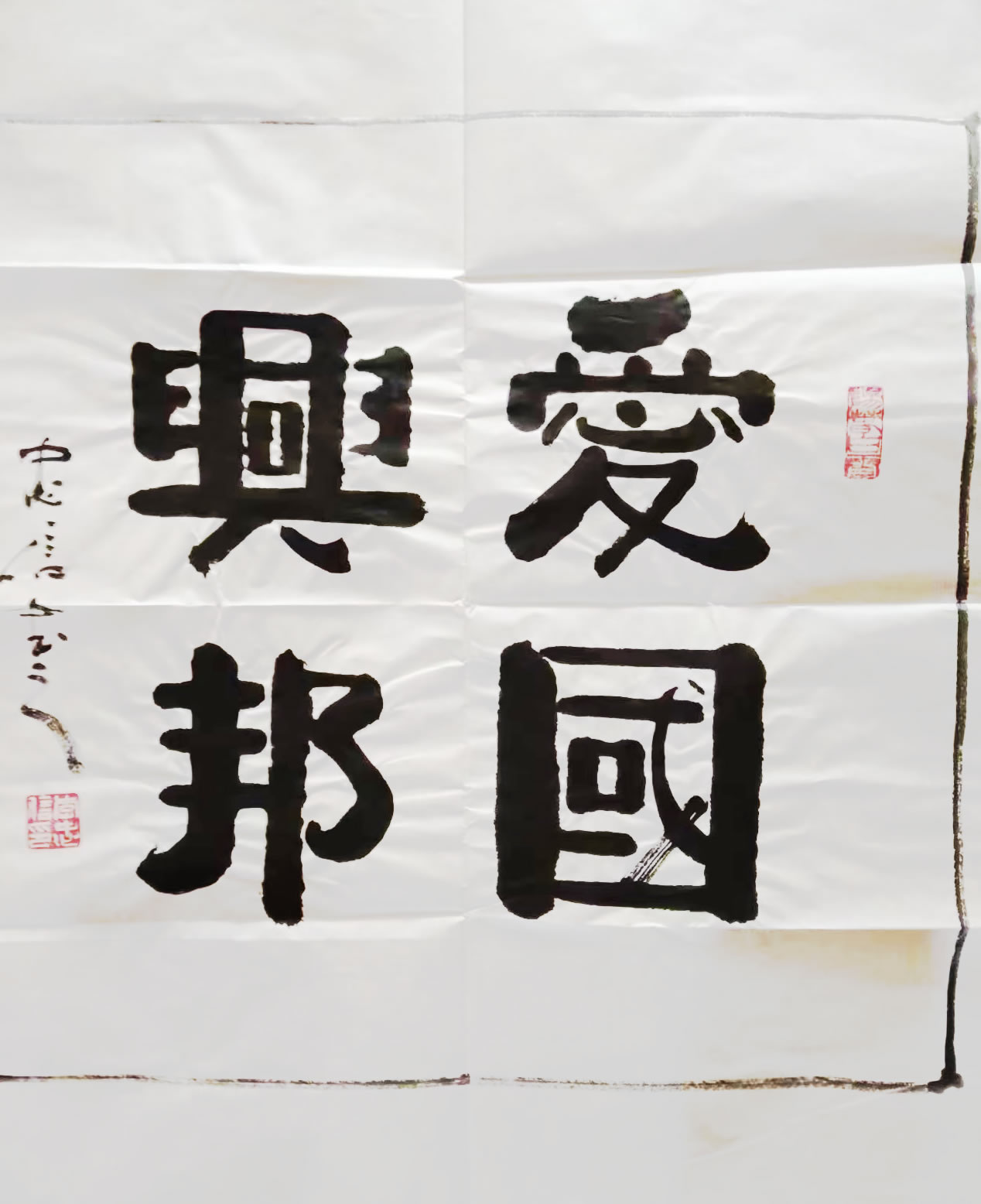 | 李忠信斗方作品:爱国兴邦 |