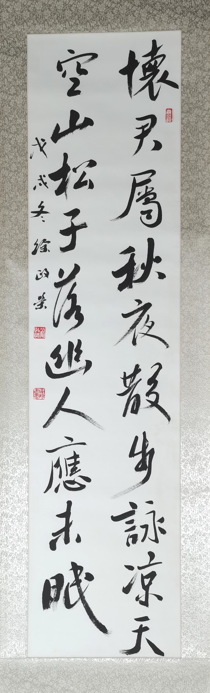 徐政荣书法四尺对开:秋夜寄丘二十二员外