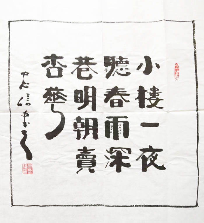 李忠信斗方作品:小楼一夜听春雨深巷明朝卖杏花